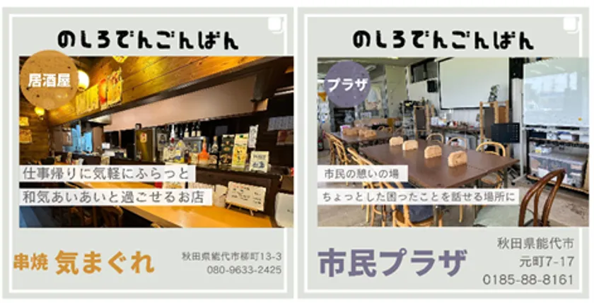 「この店いいよ」というおススメ情報をお持ちの方は「#のしろでんごんばん」をつけてSNS(Instagram/Twitter)で投稿してください。能代市の魅力発信に繋がる情報を広く募集しています。