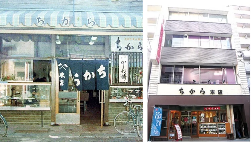 昭和40年代の「ちから本店」(左)と、現在の「ちから本店」