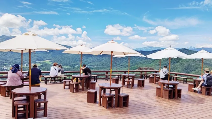 ■Momoiroカフェ:花畑や雄大な山並みが見渡せる絶景テラス