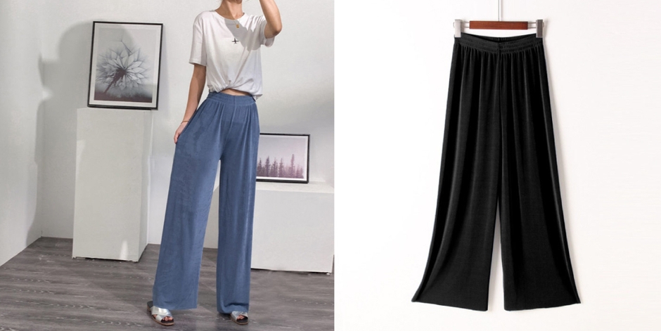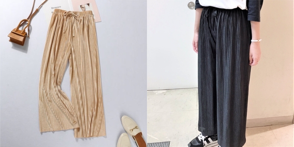 太リブサテン風パンツ ( ベージュ/ブラック )