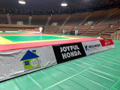 【ふかふかで安全!出場選手から好評!全長27メートルに及ぶMAT看板を提供】