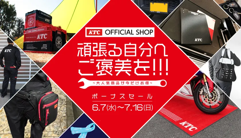 総合ハンドツールメーカー京都機械工具株式会社(KTC)(京都府久世郡久御山町/代表取締役社長:田中 滋/証券コード5966)は、当社が運営するオリジナルグッズの通販サイト「KTCオフィシャルショップ」( https://ktcos.jp )におきまして、2023年6月7日(水)~7月16日(日)の期間で「ボーナスセール」を実施いたします。