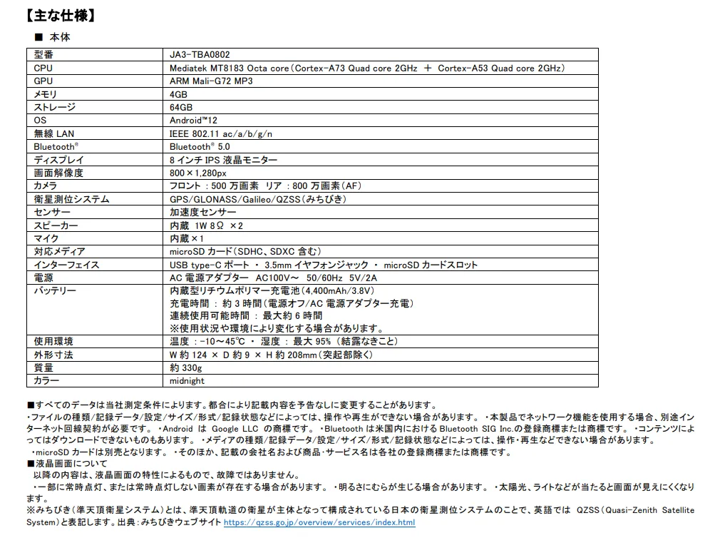 【製品情報URL : https://aiwa-digital.com/products/aiwa-tab-ab8/】