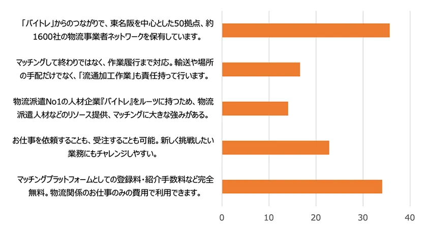 ◇弊社サービス「ロジパレ」については多くの企業が興味を寄せていただき、特に多くの拠点や物流事業者ネットワークがある点、および、無料で使用できる点が関心が高い。