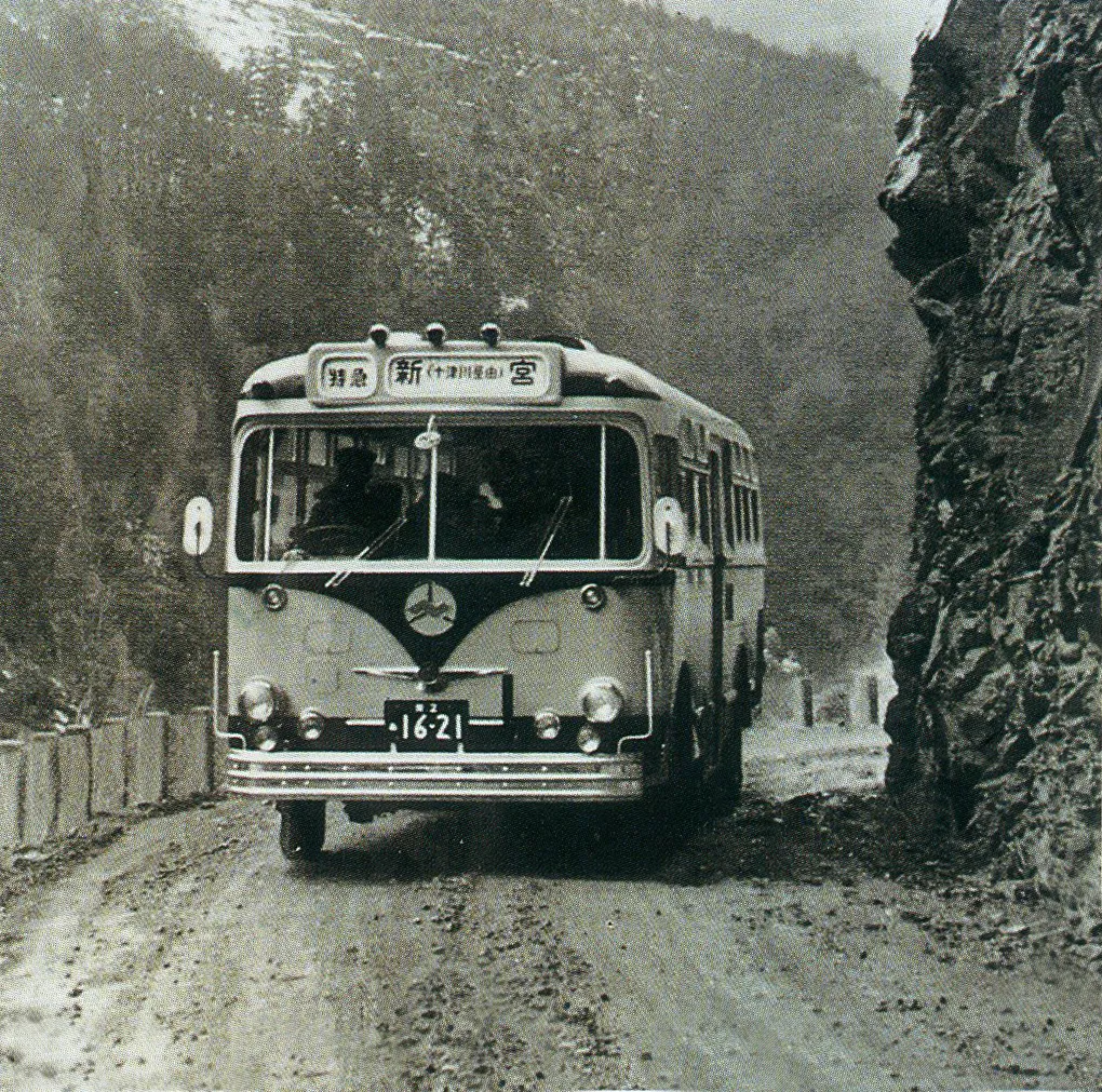昭和38年(1963)3月1日、奈良大仏前・十津川・新宮間を8時間で結ぶ新宮線特急バスの運行を開始いたしました。その後、昭和58年(1983)7月8日に大和八木駅から新宮駅までの運行に変更し、現在の路線に至ります。