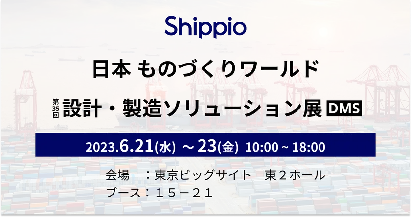 国際物流プラットフォーム「Shippio(シッピオ)」を提供する、株式会社Shippio(本社:東京都港区、代表取締役CEO:佐藤 孝徳、以下 Shippio)は、2023年6月21日(水)~6月23日(金)に東京ビッグサイトで開催される「日本ものづくりワールド2023~設計・製造ソリューション展(DMS)~」へ出展いたします。