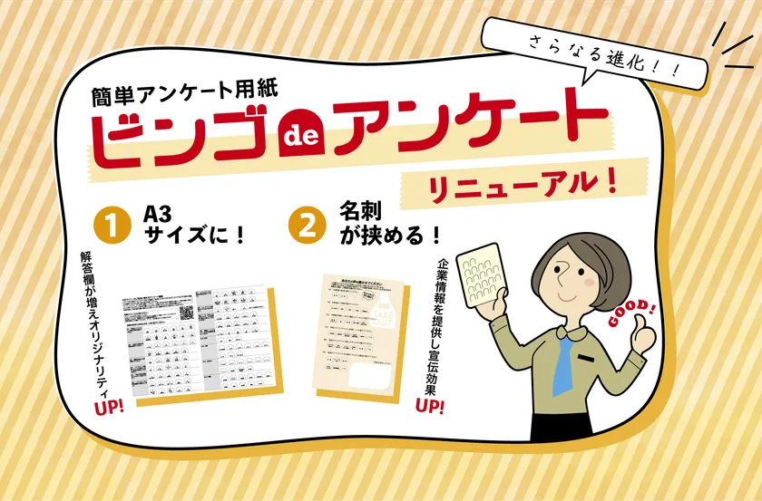 日美印刷が型抜き印刷×アンケートで企業団体を支援! ペン不要の楽々回答『ビンゴdeアンケート(R)』が 最大A3サイズまで対応拡大&名刺挿入機能を追加しリニューアル