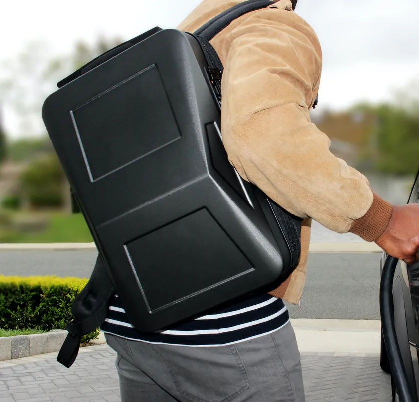 防弾装置やジェット戦闘機にも使われている ポリカーボネートで中身を守り、使いやすい機能を満載した タフな「ガッチリ系」リュックサック、ロサンゼルスから!