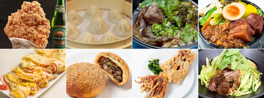 前回開催では1日2,000枚以上売れた、名物!スパイス香る特大唐揚げ「大鶏排(ダージーパイ)」、毎回大人気の台湾天心代表格、肉汁がジュワーっとあふれ出す「小籠包(ショーロンポー)」、麺の上にじっくりと煮込んだとろっとろの牛肉がのる「牛肉麺(ニョウロウミェン)、台湾の家庭料理の定番、大きな豚角煮と豚ひき肉の「魯肉飯(ルーローファン)」、小麦粉に葱を練りこんで焼いたパリッとふわっと食感の「葱油餅(ツォンヨゥピン)」、胡椒たっぷりの肉ダネを生地にぎっしり詰めて焼き上げたストリートフード「胡椒餅(フージャオビン)」、びっくりするほど大きく台湾塩胡椒がイカの味を引き立てるイカの丸揚げ「酥炸大魚尤※魚(スーヂャオダーヨウイー)」、夏にぴったりのどごし最高の冷たい麺料理「台湾涼麺(タイワンリャンミェン)」などが楽しめます。