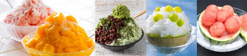 「かき氷祭ブース」では、台湾かき氷、雪花冰(シュエファービン)はもちろん、スイカ、メロンなどのフレッシュフルーツを丸ごと使ったかき氷や、あんこ、抹茶の和テイストかき氷など。
