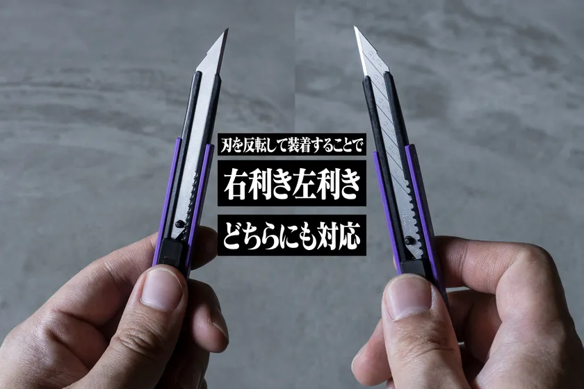 ワンタッチで刃を出し入れし、しっかりとロックできるオートロック機能付き。またクリップを本体から外せば刃折器として使用可能。さらに刃を反転して装着することで右利きと左利きどちらでも使用することができます。
