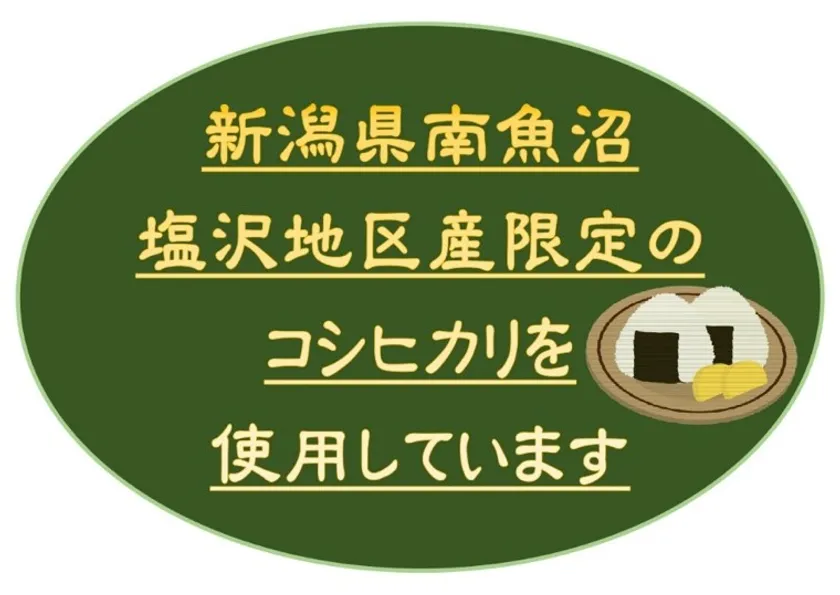 希少な南魚沼塩沢地区のコシヒカリを独自に入手し、当店のおにぎり全てに使用しています。新潟県南魚沼市塩沢地区は、28年連続で米を評価する「食味ランキング」最高評価の特Aを獲得し続けた地区で、特においしいお米が取れる地域です。