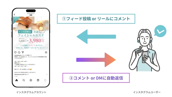 例えば、「サンプル希望」のコメントをくれたユーザーに対して、お申し込みのためのURLを添付したDMを自動送信できます。