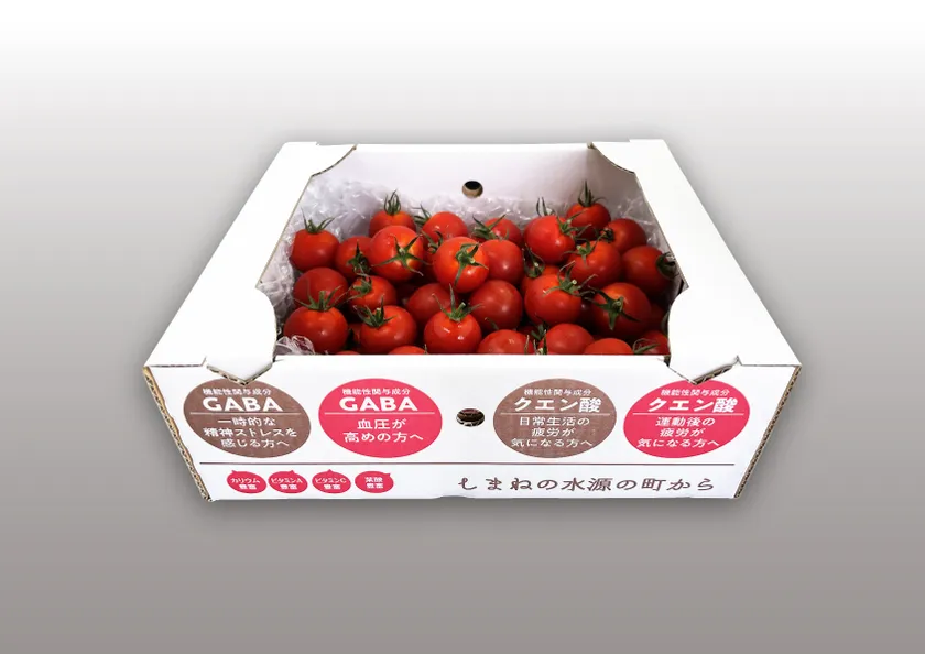 「農業を健康産業に!」を経営理念に掲げる当社は他社との更なる差別化を目指し、近年社会問題にもなってきている超ストレス社会の問題解決としてトマトに含まれる栄養素で精神ストレス緩和・肉体的疲労軽減ができるのではないかと着目しました。同志社大学生命医科学部アンチエイジングリサーチセンターと産学連携で共同研究を経て、リコピン、GABA、クエン酸の高含有を確認し、機能性表示食品登録を目指しました。夏場と冬場でのバラツキが多いリコピンは対象から外し、GABA、クエン酸の2つの栄養素で3つの機能性表示食品登録となりました。