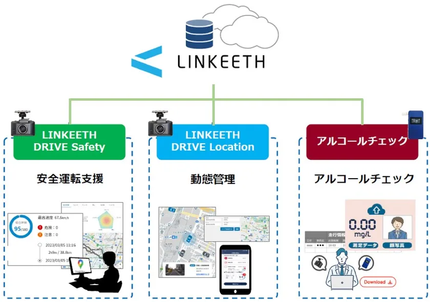 本取り組みでは、AI搭載通信型ドライブレコーダーとアルコールチェックデータをクラウドで一元管理し共有することで、これまで紙で行われていた運転日報の作成を自動で行うなど、ドライバーと安全運転管理者(以下、管理者)の業務負荷を削減します。