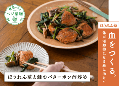 新着情報 ベジ薬膳レシピ 「ほうれん草とバターポン酢炒め」