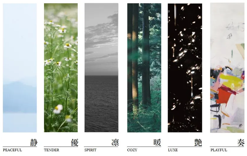 ■従来の流行に合わせたテイスト提案を脱却、空間における色や素材、カタチなどから受ける印象を言語化し導き出した独自の「6つの感性フィールド」へと変革