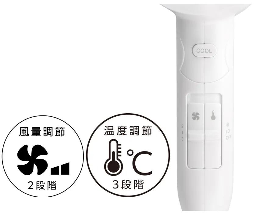 3段階の温度で季節や髪、地肌に合わせた調節が可能。