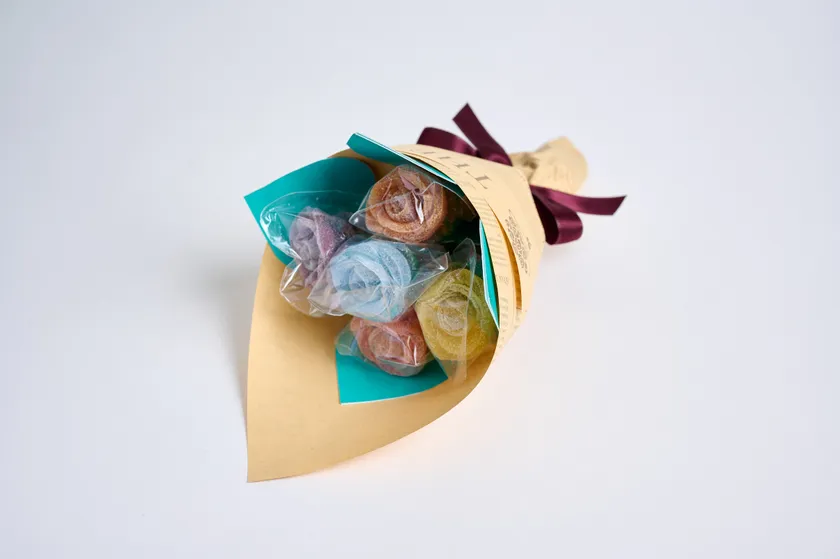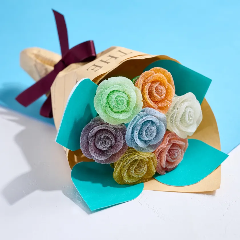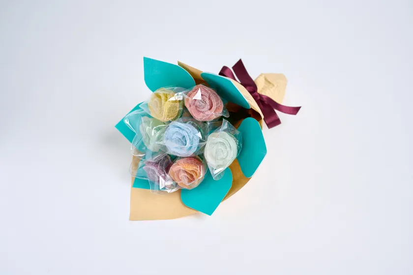 イチゴ、ソーダ、レモン、マンゴー、ブドウフレーバーとバランスの良い配色の組み合わせをセットにしたブーケ。思い出に残る大切な記念日の贈り物に。