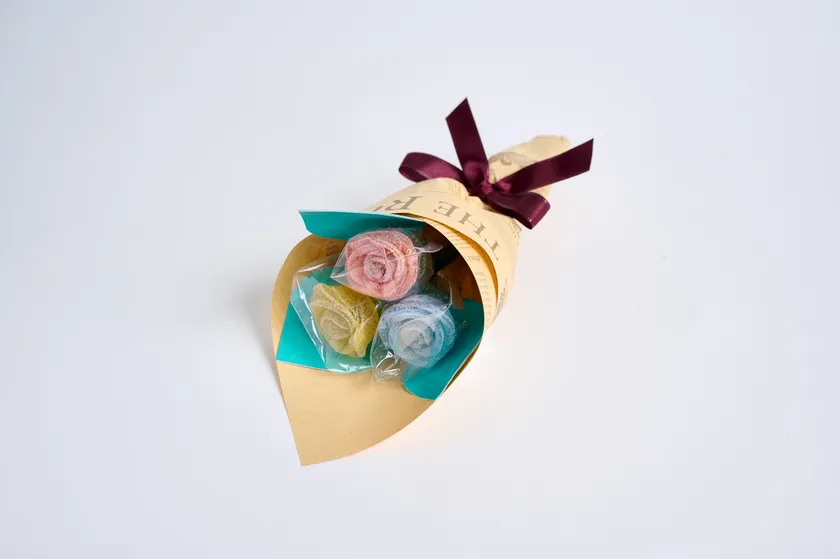 イチゴ、ソーダ、レモンフレーバーを組み合わせた、可愛らしい印象の3本ブーケ。小ぶりな3本ブーケは、手土産やちょっとしたサプライズにぴったり。
