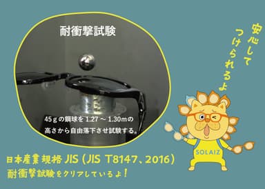 フレームは哺乳瓶や医療用に使われるTR-90樹脂素材を使用。さらにフレーム内側には柔らかいラバー素材を使用し且つオリジナルのクッション構造を設けた二重構造となっています(実用新案取得済)。お子様が万一転倒した場合も衝撃を優しく吸収します!