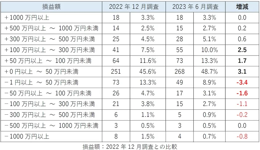 損益額:2022年12月調査との比較