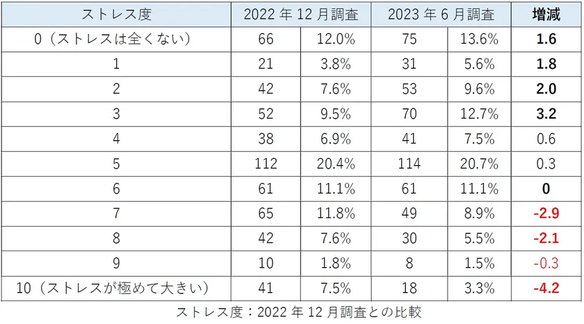 ストレス度:2022年12月調査との比較