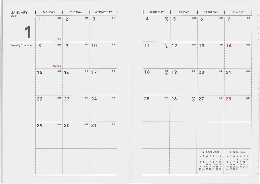 1ヵ月を一目で見渡せるマンスリータイプ