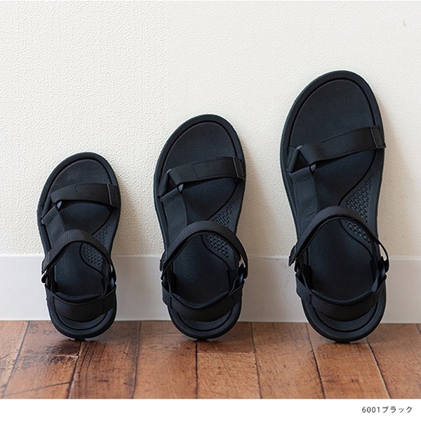 定番のスポーツサンダルにウェッジソールをMIX。海、山、川などアウトドアからタウンユースまで幅広いシーンに合わせやすく、この夏のマストアイテム間違いなし。ストラップは面ファスナーを使用。足の幅に合わせて、調節が可能なので、幅広さんにもオススメです。