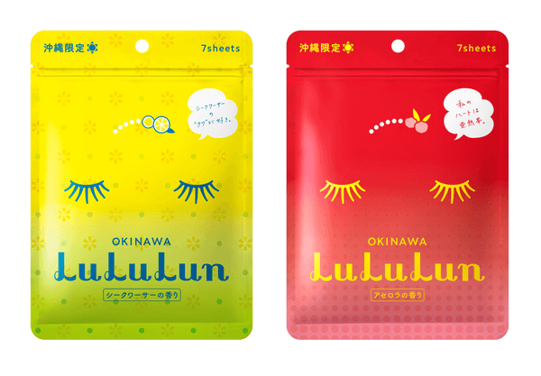 商品内容:沖縄ルルルン(シークワーサーの香り)7枚入(画像左)、沖縄ルルルン(アセロラの香り)7枚入(画像右)、ルルルンオリジナルミラーの3点セット