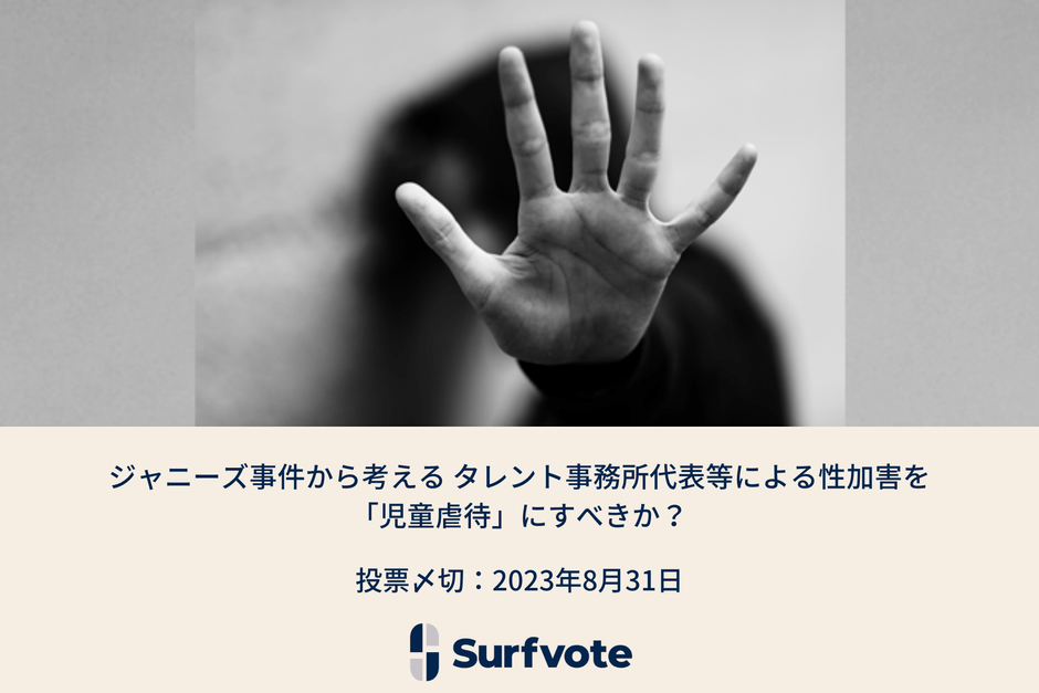 ジャニーズ事件から考える タレント事務所代表等による性加害を「児童虐待」にすべきか?Surfvoteで投票開始