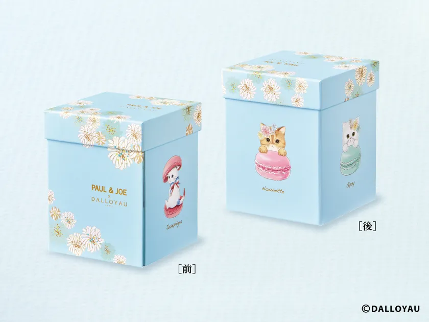 ※『ガトー ミャオ缶(イエロー)』、『ニャカロンラスク缶(ピンク)』、『ニャカロンラスク缶(グリーン)』、『サロン ド テ(缶入)オーガニック セイロンティー』、『PAUL & JOE × DALLOYAU 限定ショッパー』は、ダロワイヨ店舗、ダロワイヨ公式オンラインショップのほか、PAUL & JOE一部店舗、PAUL & JOE公式オンラインストアでも販売いたします。