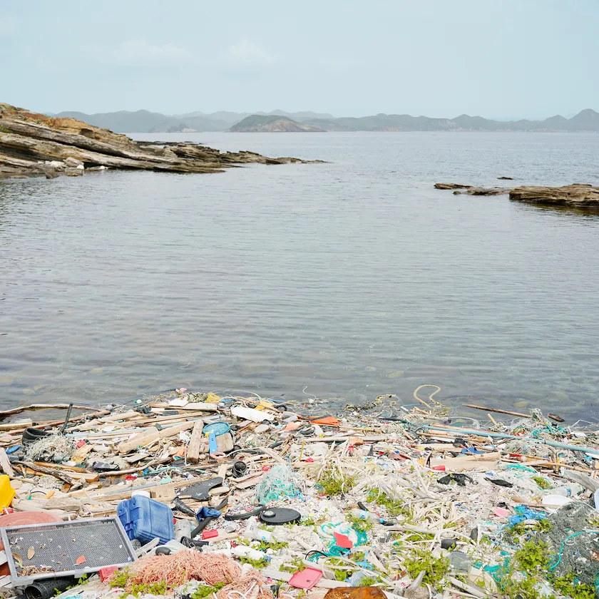 海岸に流れ着く海洋プラスチックごみ