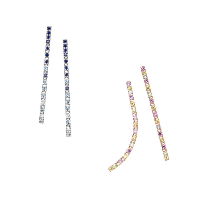より存在感のある長さで、ラグジュアリーな印象を醸し出す「LINEA ピアスM」も登場しました。流れるようにセッティングされたダイヤモンドやサファイアの輝きが顔周りを華やかに彩ります。
