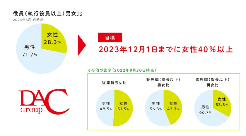 役員の女性比率40%への挑戦。 日本のジェンダーギャップ指数の向上に貢献したい! 女性活躍推進に向けた「DAC PRIDE +」発行