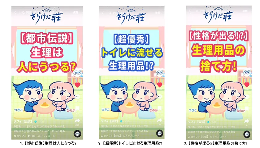 ソフィ公式TikTok「さらけだ荘」開設から2ヶ月間で 600万回再生を突破 ~“生理あるある”動画に若年層が共感~