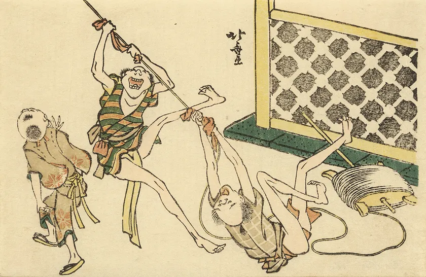 葛飾北斎「風流おどけ百句 貧ながき糸目をもつて呵られる」すみだ北斎美術館蔵(通期)※1