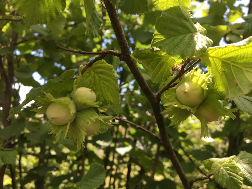 ヘーゼルナッツはアーモンド、カシューナッツと並んで世界三大ナッツの一つとされています。濃厚な味わいと香ばしい風味が特徴でキャラメルやチョコレートなどとも相性がよく、洋菓子に欠かせない素材です。ヘーゼルナッツの収穫には苗の定植から3~5年程度かかるため、現在の日本では「ほぼ輸入品が占めている」(日本ナッツ協会)状況です。また輸入されるヘーゼルナッツは乾燥品や粉末などが一般的で、輸送に時間がかかると風味が落ちるため、国産ヘーゼルナッツへの期待が高まっています。
