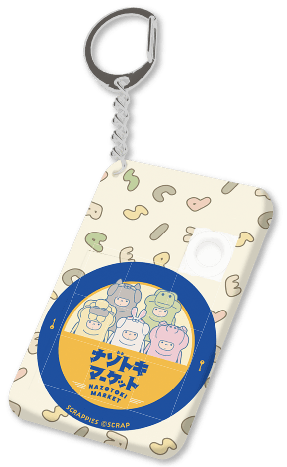 また、『ナゾトキマーケット』SCRAPブースにて本商品に限らず一会計税込6,000円以上購入した方には、SCRAP公式キャラクターであるSCRAPPIES(スクラッピーズ)がデザインされた、スライドパズルキーホルダーをプレゼント。ここでしか手に入らない限定グッズです。