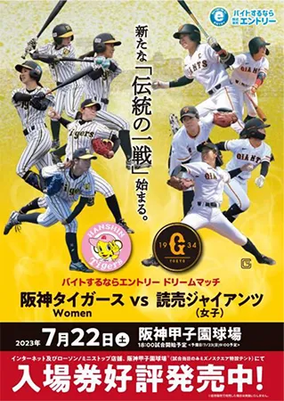 阪神タイガースと読売ジャイアンツが運営する女子硬式野球チーム、「阪神タイガース Women」と「読売ジャイアンツ(女子)」との初対戦が、7月22日(土)阪神甲子園球場で開催されます。チケットは好評発売中!