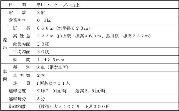 ・鋼索線(妙見の森ケーブル:黒川~ケーブル山上)