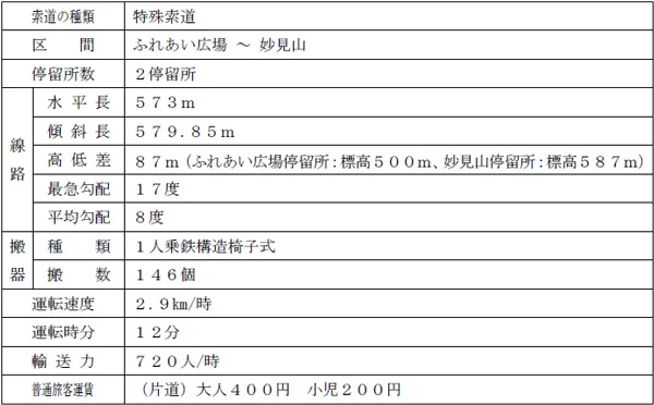 ・索道線(妙見の森リフト:ふれあい広場~妙見山)