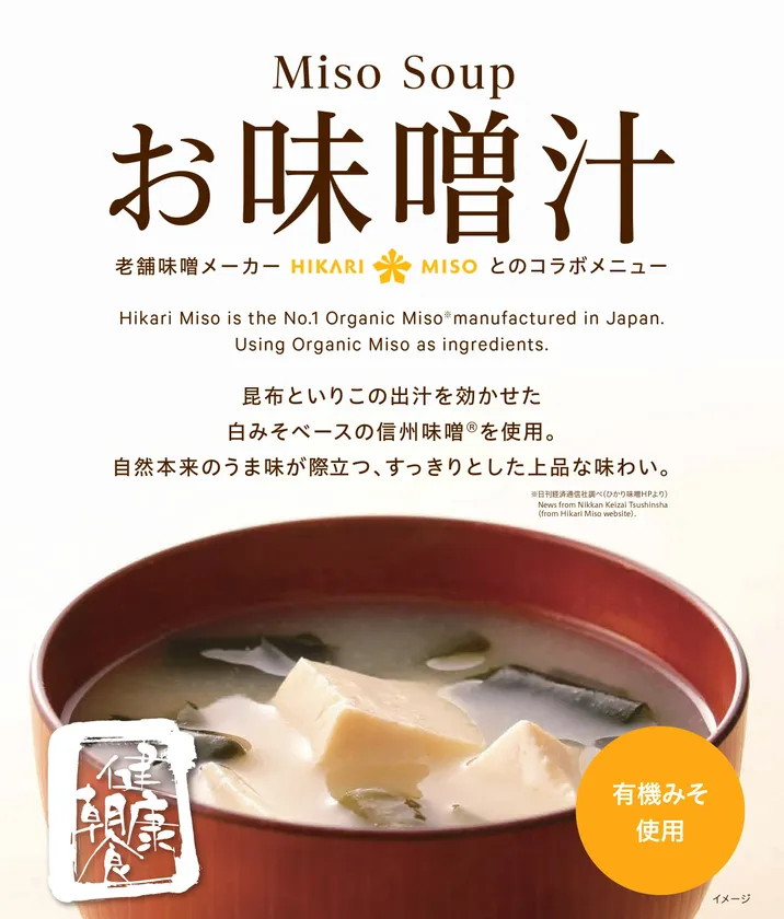 スーパーホテルがひかり味噌と共同開発した オリジナル有機味噌汁を7月1日より朝食ビュッフェにて提供開始