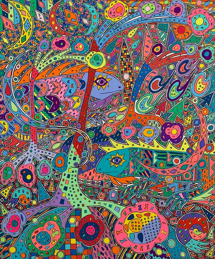 そして、色鮮やかな組み合わせの色彩には、自分の絵を観た人が少しでも幸せ(ポジティブ)な気持ちになれば、そこに小さな平和が生まれ、やがてそれは大きな平和につながっていくのではないか、との想いが込められています。