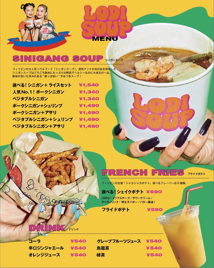 人気インフルエンサーでダンサーのYURINOと須田アンナのユニット『アンエンユリ』がフィリピンの国民食「シニガンスープ」をプロデュース!「 LODI SOUP/ロディースープ」が渋谷にオープン!