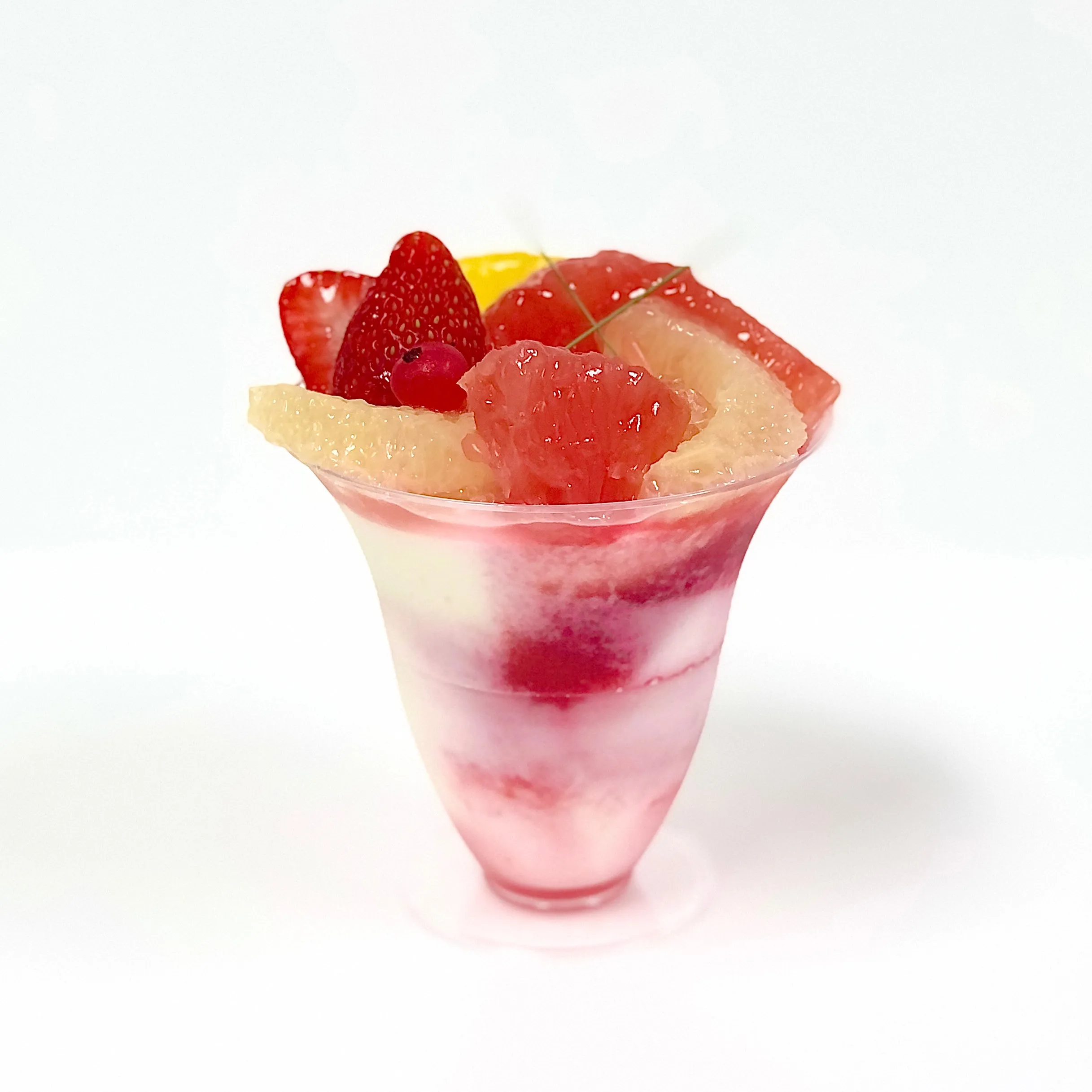 ヨーグルトムースとフランボワーズソースにグレープフルーツや苺などフレッシュなフルーツをトッピング。