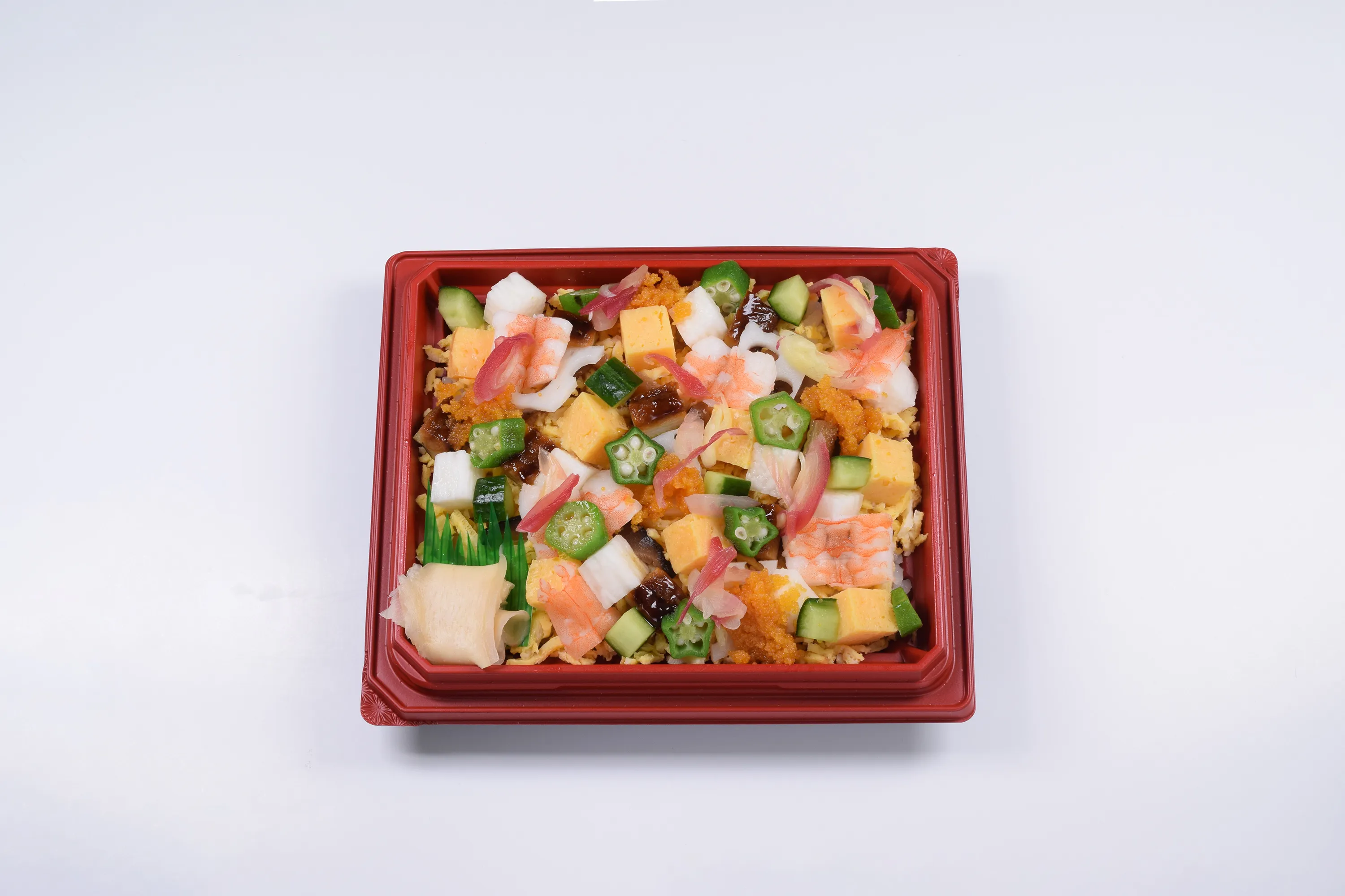 みょうがやオクラ、海老、穴子などが入った、暑い夏にさっぱりと食べられるちらし寿司。