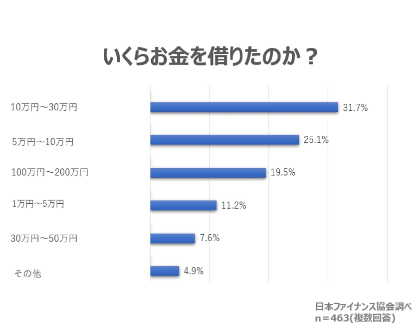 借入金額第1位は「10万円~30万円」で、全体の31.7%の人が10万円~30万円を借りていたことが分かりました。