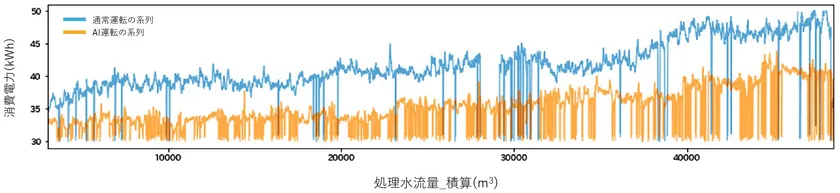 また、同実証の手順としては、2022年11月から2023年1月にかけて、電子産業関連プラントにて、「通常運転」時と「AI最適運転」時の消費電力量を比較する形で実施されました(図2)。その結果として、CO2排出量の削減率が目標値に達することが確認され、本ソリューションの効果が実証されています。