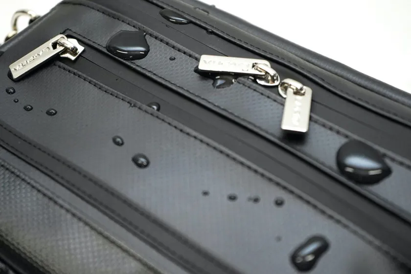 水をしっかり弾き、中身を守ります。また汚れも染み込まず、拭き取りやすいのが特長で、日常使いはもちろん、バーベキューのような食事や飲料があるシーンでも活躍間違いなし。